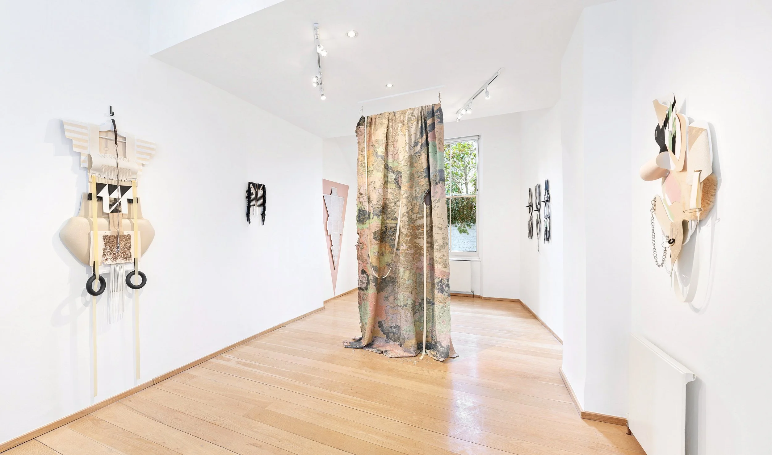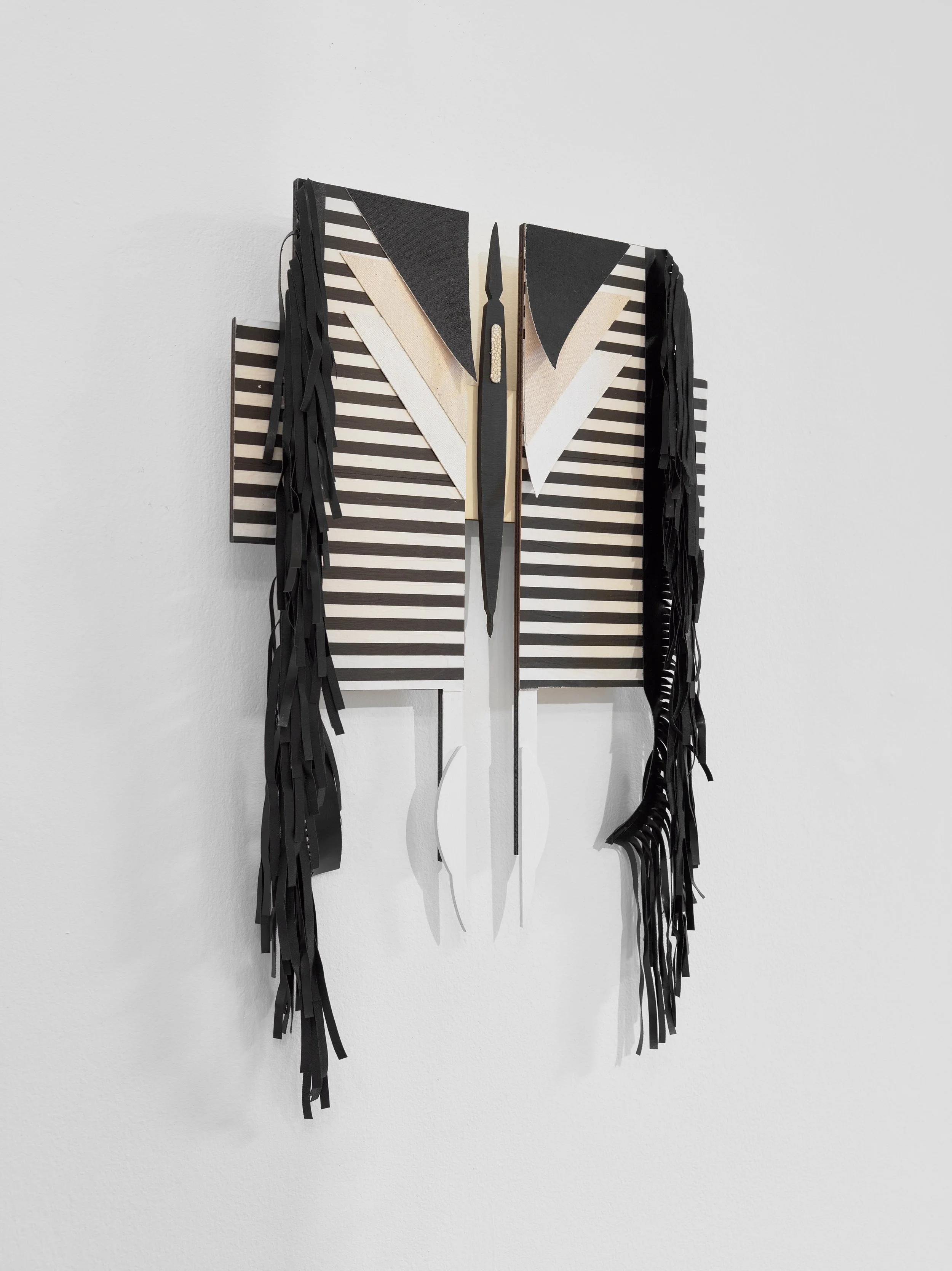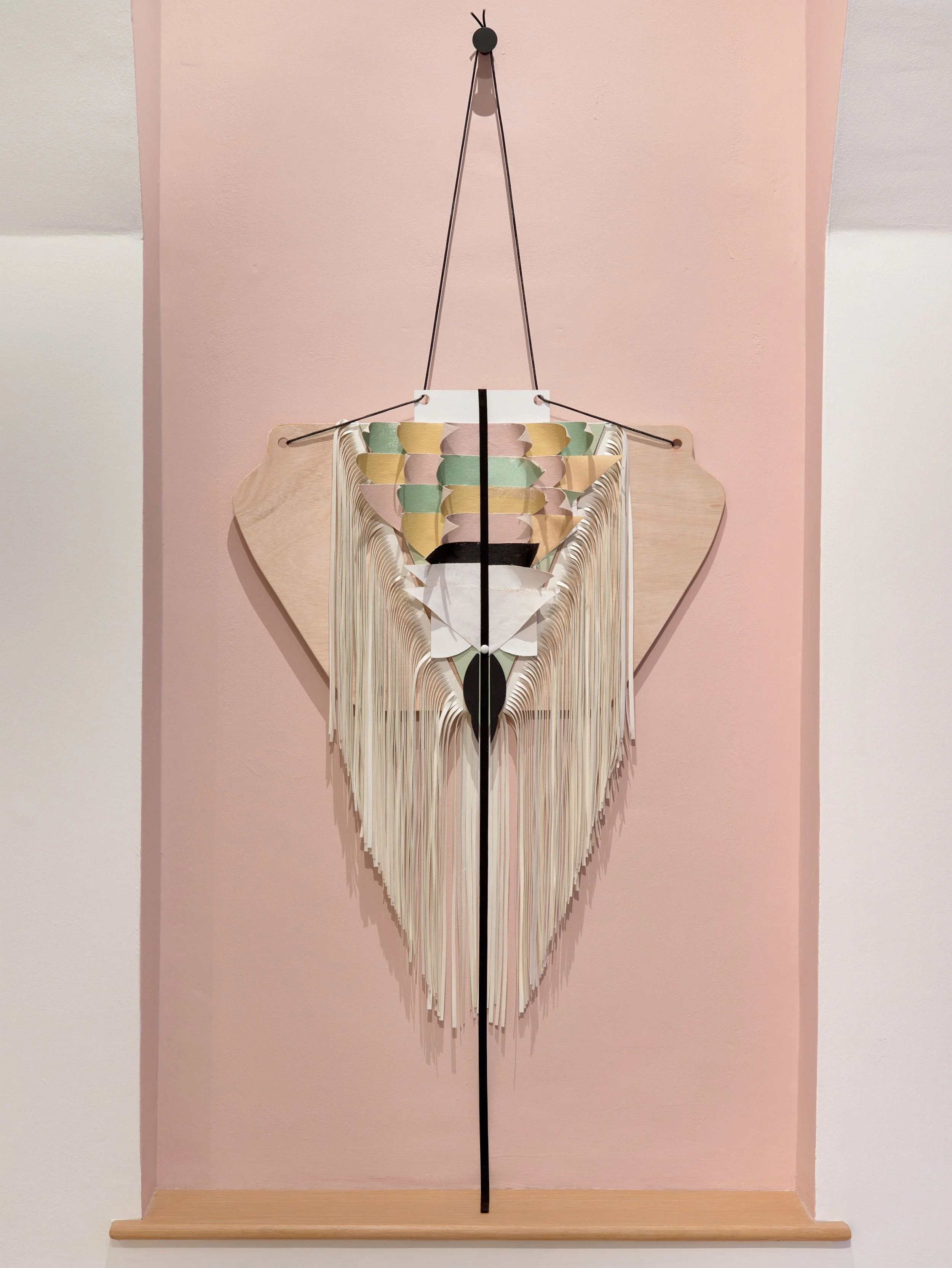 Ritual Assimilation (2021/22).Plywood, Canvas, Vinyl Trim, Paint, Rubber, Polystyrene, Dog Collar, Accreted Latex, Pins, Coathanger